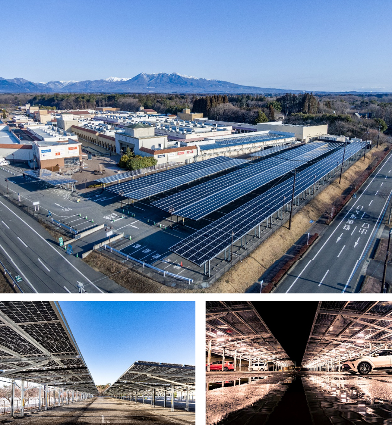 Sojitz Corporation (Head Office: Chiyoda-ku, Tokyo; Representative Director, President & CEO: Masayoshi Fujimoto; “Sojitz”), MIRAIT One Corporation (Head Office: Koto-ku, Tokyo; President and Chief Executive Officer: Toshiki Nakayama; “MIRAIT One”), and ShirokumaPower Co., Ltd. (Head Office: Minato-ku, Tokyo; Representative Director: Kanzo Tanimoto; “ShirokumaPower”) have installed solar carports and rooftop solar power generation at Nasu Garden Outlet, which is operated by Sojitz Commerce Development Corporation (Head Office: Chuo-ku, Tokyo; Representative Director: Hiroki Kashiwagi; "SCDC”), and began generating electricity and supplying power to the shopping center on March 1 as part of their efforts to contribute to increasing the value of the facility through decarbonization solutions and other measures.