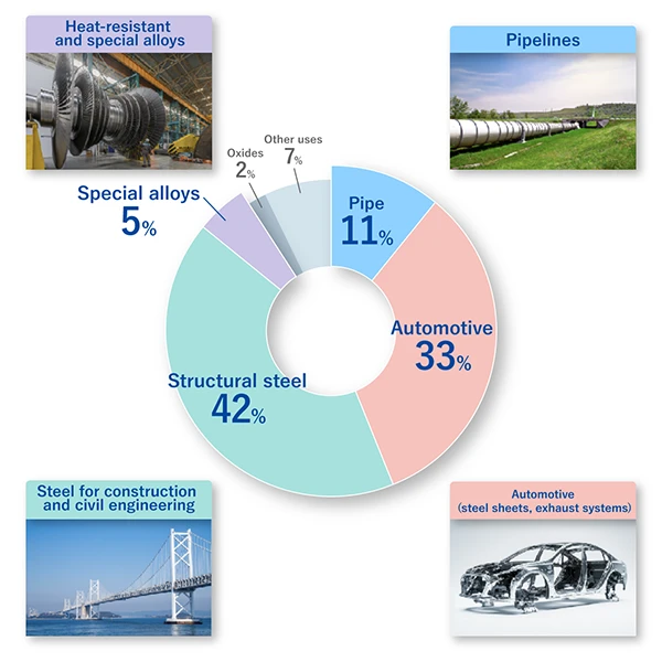 Sojitz is CBMM’s exclusive distributor for the Japanese market and supplies CBMM’s niobium products to consumers in Japan. Brazil is home to roughly 90% of the world’s niobium reserves and output, and the mined ore is processed domestically into ferroniobium and other products before being supplied primarily to steel manufacturers. More than 90% of the niobium sold is used as an additive in the steelmaking process, and the mineral has become indispensable in the creation of high-performance steel products such as automotive steel sheets, construction-grade steel, pipelines, and heat-resistant special alloys. Notably, niobium was even utilized in the steel used to build Tokyo Skytree.