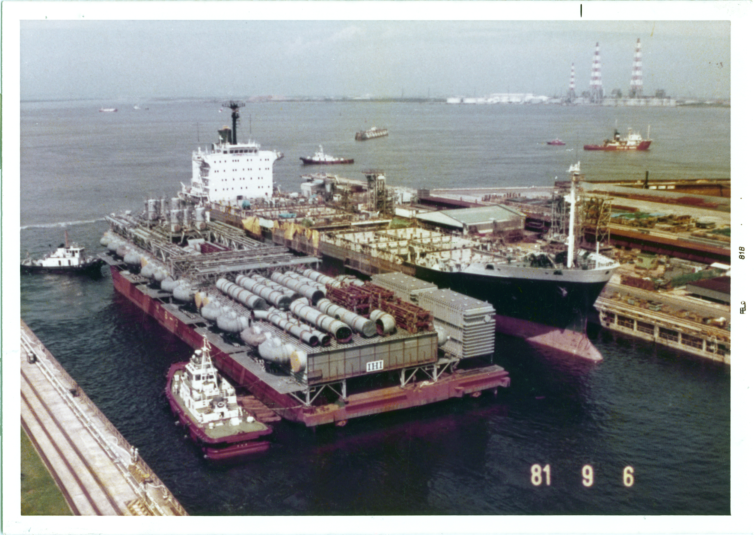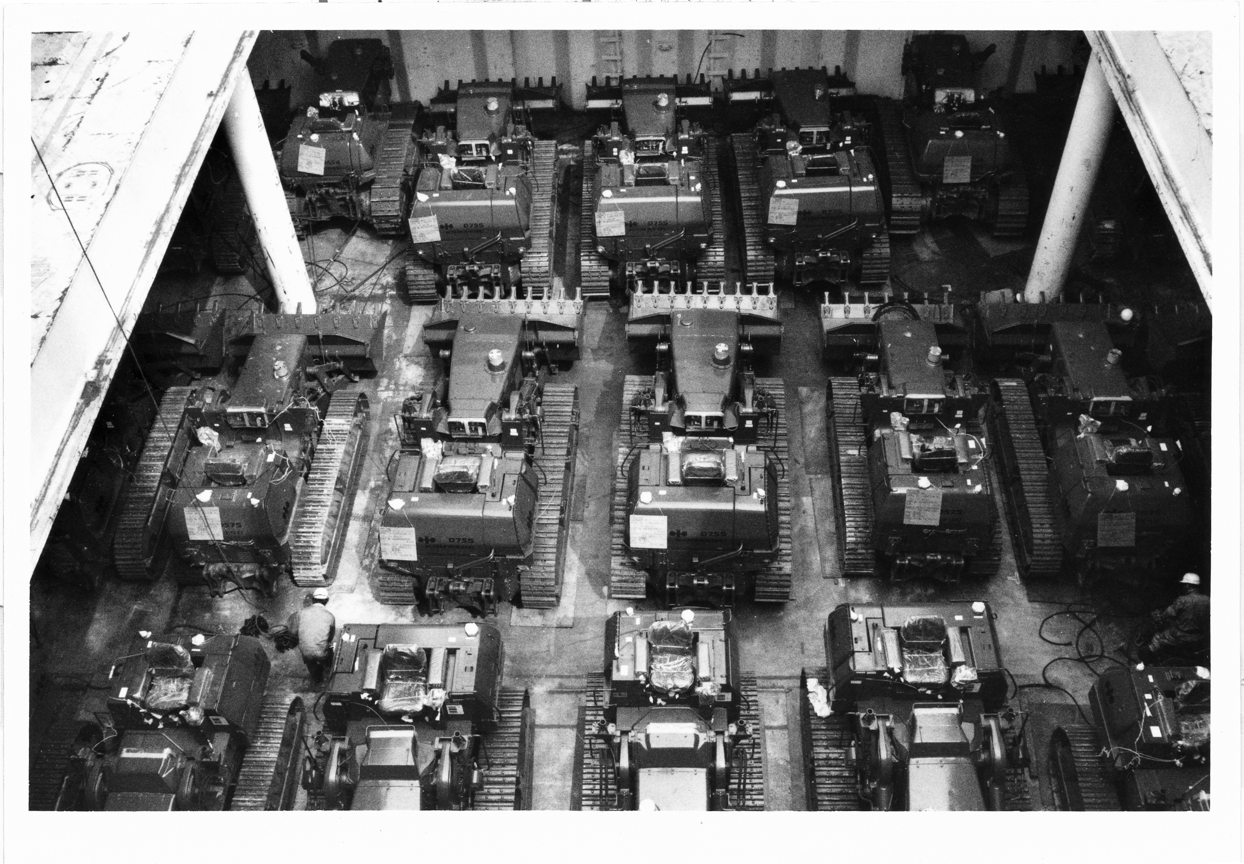 【日綿實業・ニチメン】アルジェリアに向けて船積される小松ブルドーザー(1978年、神戸港)