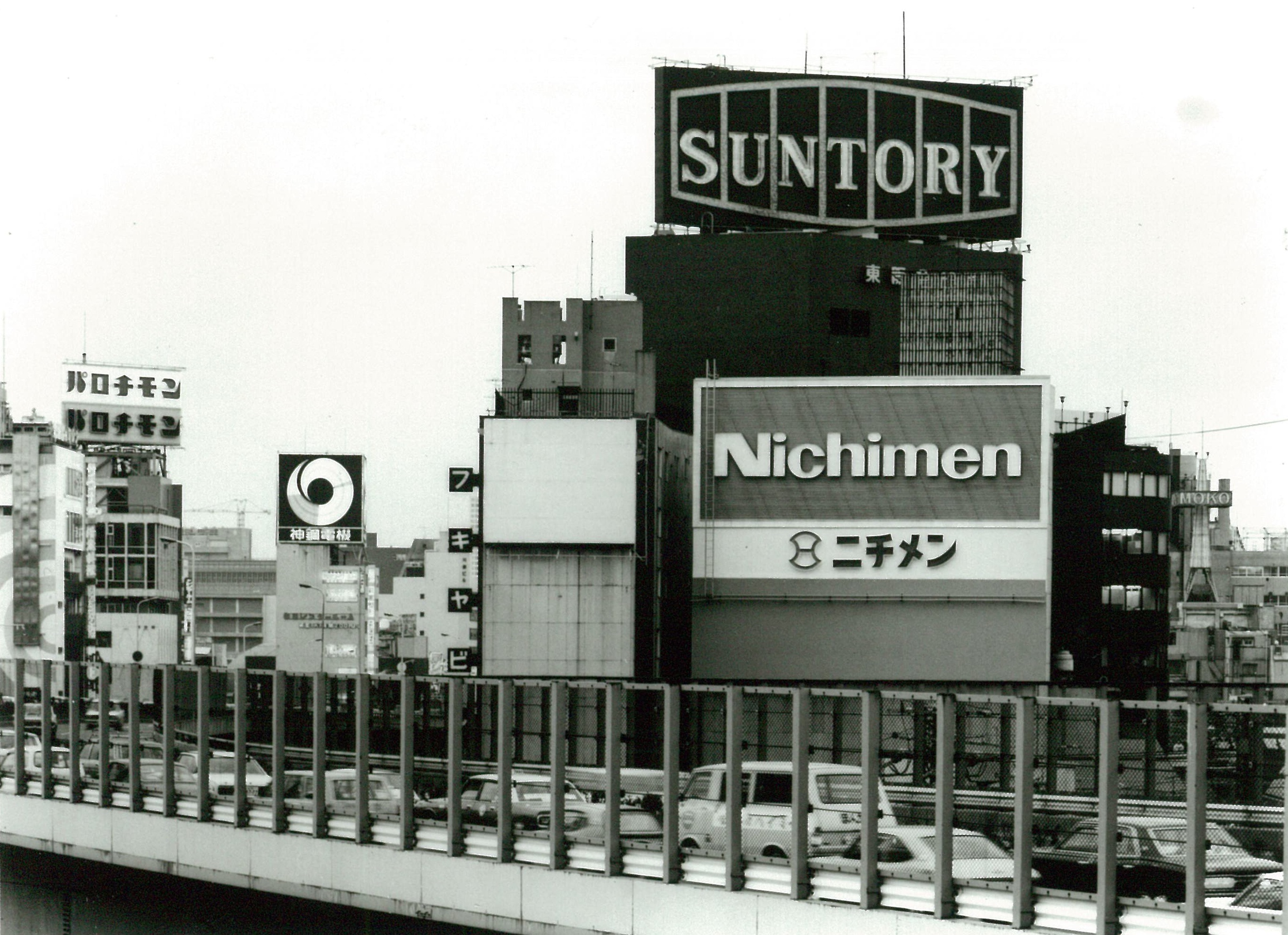 【日綿實業・ニチメン】大阪・新御堂筋に設置された広告塔(1973年4月)