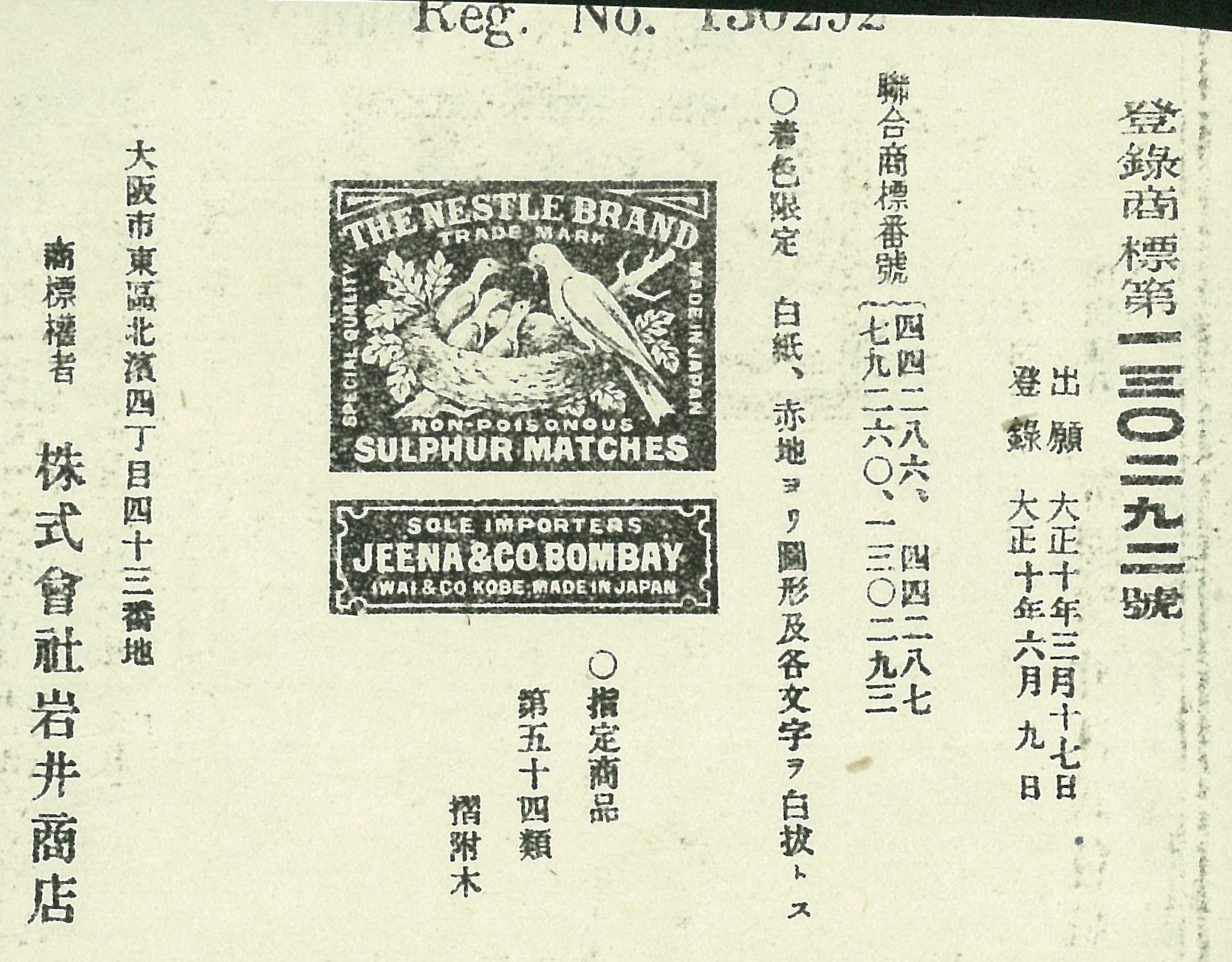 【岩井商店・岩井産業】日本登録商標大全/マッチ(1910年)