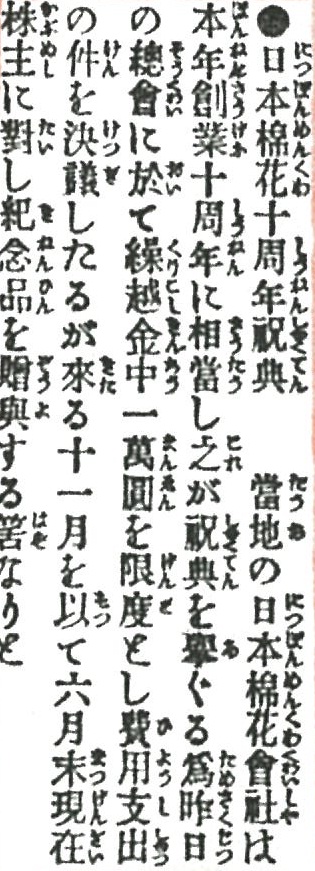 【日本綿花】大阪朝日新聞・創業10周年を伝える記事(1902年7月13日)