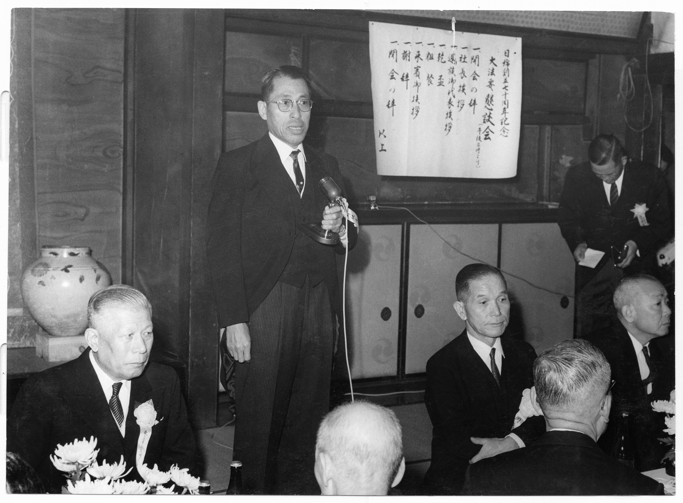 【日綿實業・ニチメン】物故者法要で挨拶する福井社長(1962年)