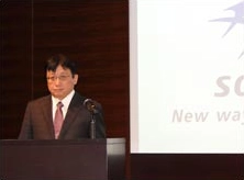 説明会には約170名の個人投資家の皆様にご参加いただき、経営企画、IR、広報を担当する常務執行役員の藤本 昌義が、当社の概要、業績、事業活動などについてご説明しました。