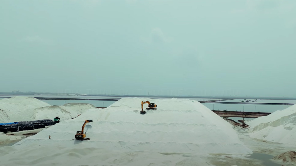 双日のサプライヤーはその条件すべてを満たす西インドのグジャラート州に生産拠点を置いています。インドは日本の約9倍の面積を持つ国ですが、工業塩の生産に適している場所は限られており、インド産工業塩の9割近くがグジャラート州で生産されています。双日は3つのサプライヤーの5か所の塩田から生産される工業塩を4か所の港で船積みしています。複数の塩田と港を利用することで、豪雨などの自然災害による出荷への影響の低減を図っています。