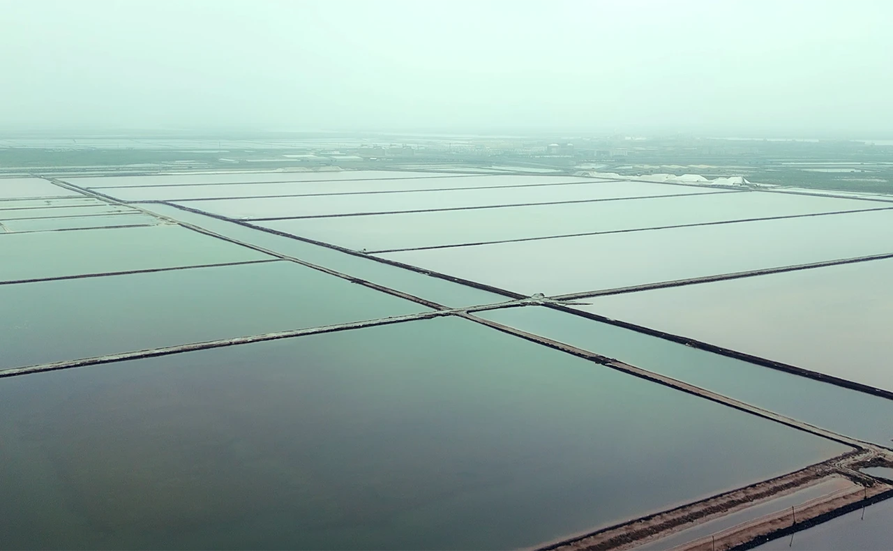 工業塩は自然の産物です。特に双日が取り扱う天日塩は自然に頼る部分が大きく、気候変動による自然災害の発生を織り込んだ形で供給体制の維持することを重視しています。天日塩は海水や地下かん水を塩田に引き込み、太陽光と風によって水分を蒸発させ結晶化させる塩種です。製造工程では主に再生可能エネルギーを使用するため、他塩種(岩塩、せんごう塩など)と比べて地球環境への影響は軽微といえます。ただし、その生産現場は、①広大な土地が確保できること、②高温で乾燥して雨が降りにくいこと、を満たす場所であることから、おのずと生産に適した地域は限られてきます。