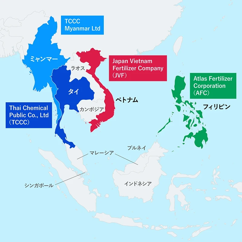 そして、その経験を基に横展開し、1995年にはフィリピン最大の高度化成肥料メーカーAtlas Fertilizer Corporation(以下、AFC)に資本参加、同年にベトナムでJapan Vietnam Fertilizer Company(以下、JVF)を設立して、東南アジアにおいて肥料事業を拡大してきました。