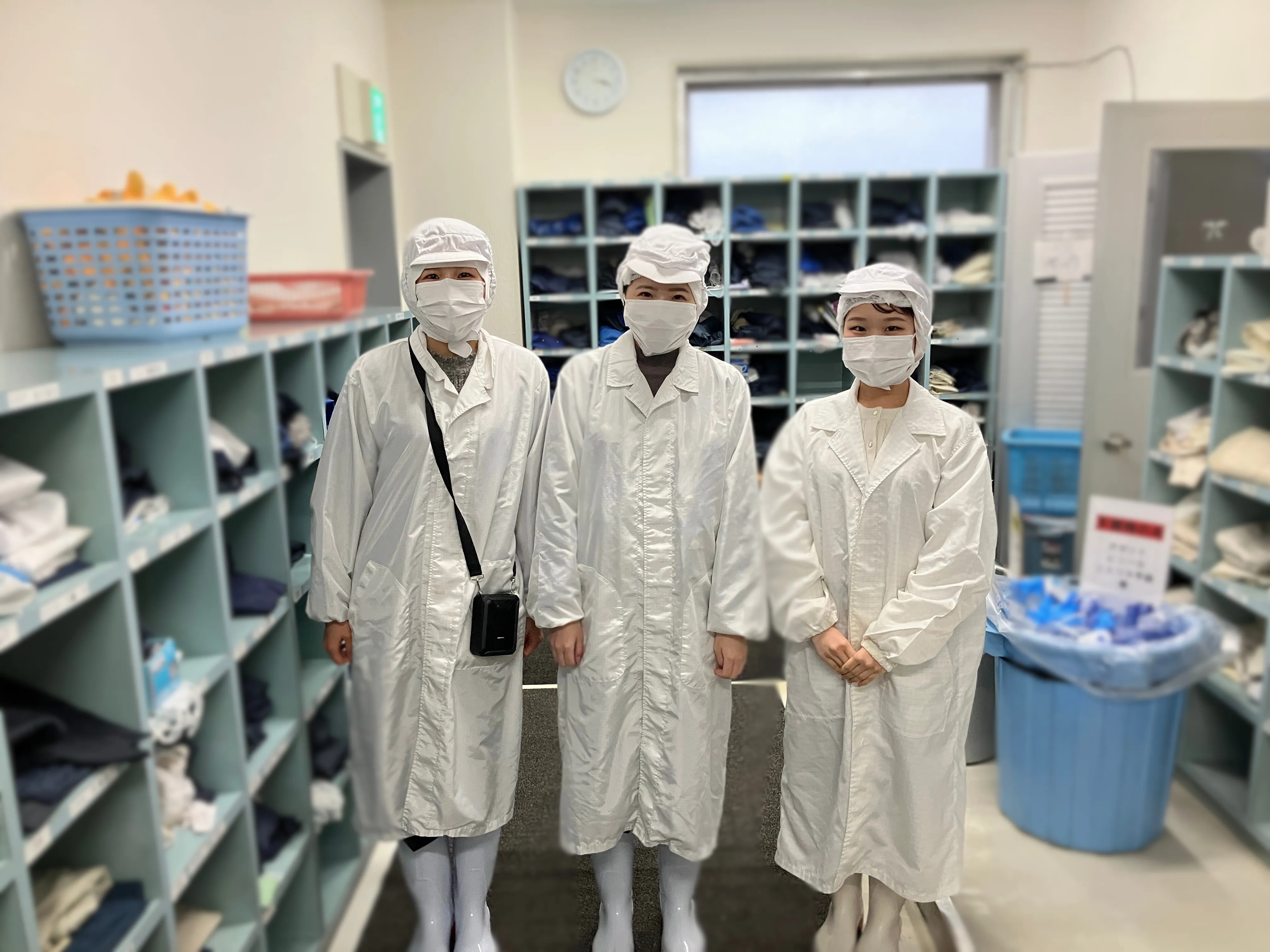 清水工場では、お客様が直接口にする食品を取り扱っている工場内へ潜入するため、衛生服に着替えて探索します!