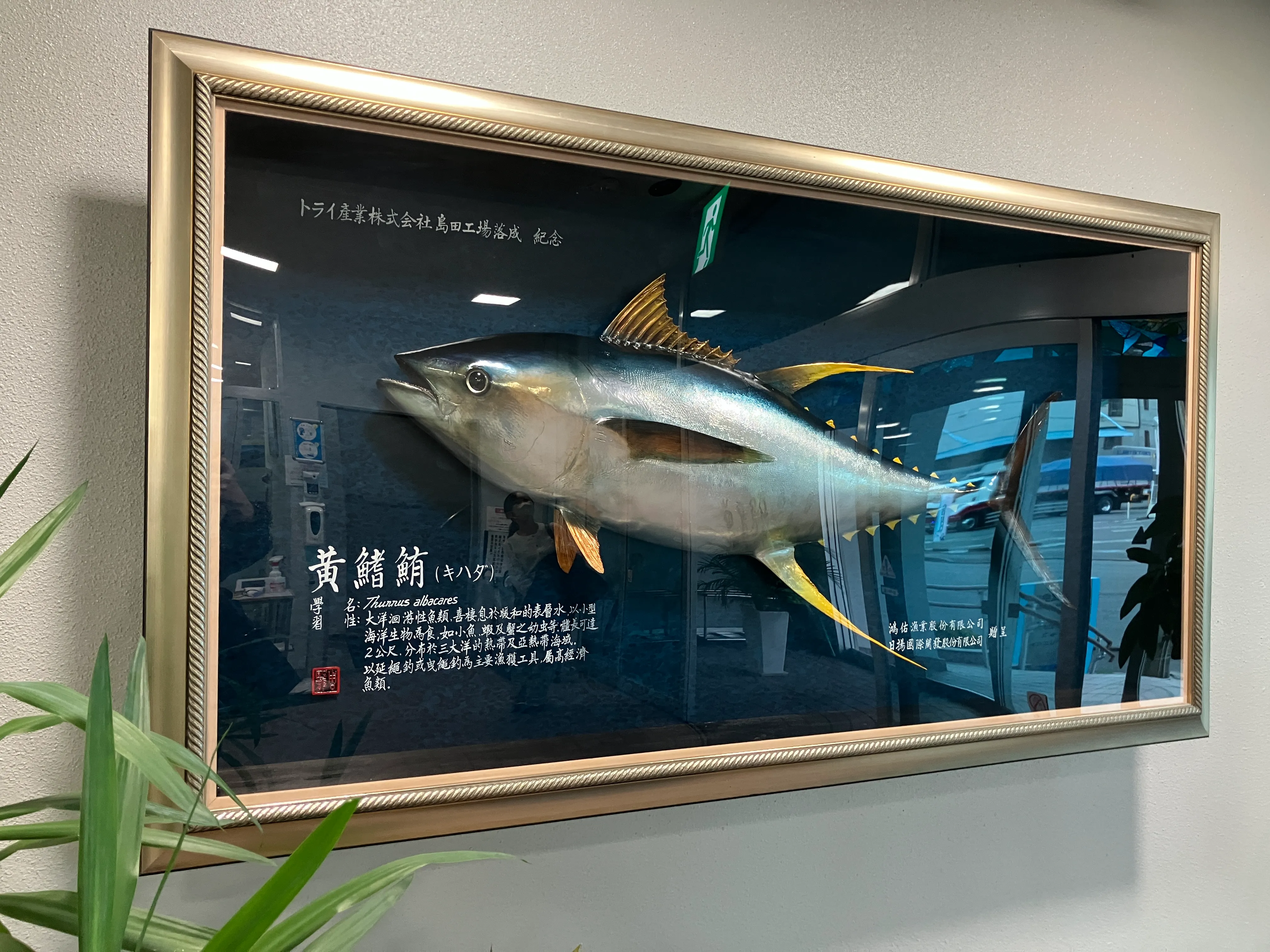 会社のエントランスにキハダマグロの大きなオブジェがお出迎え!